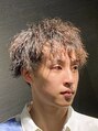 前下がりマッシュショートのツーブロックに、メンズパーマスタイルのトレンド、ツイストスパイラルパーマをかけました。無造作でラフなほつれ感の仕上がりがとてもセクシーなスタイルです。ウェーブの出にくい柔らかい髪質の方でもチャレンジできます。