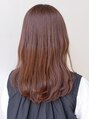 明るくすると出てくる赤みを生かしたオレンジベージュです!ベージュと相性抜群のオレンジであたたかい柔らかさとツヤ感を◎全体はじょどよく厚みを残してカットしました。顔周りに細かく作ったおくれ毛もポイントです◇