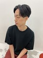 前にパーマをかけたのを活かして、毛先にパーマが残るように短くすっきりとしたショートヘア。黒髪の艶やかさが出てメンズヘアには大人気!!