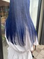 鮮やかなブルーカラー!色落ちを緑っぽく落とすため、鮮やかで発色を良くしました。光の当たり方によって少しずつ色が変わって見えるので楽しみ方もたくさんあります!ロングヘアのワントーンカラー、とってもかわいいです!