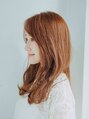 無造作な重ためのロングヘアです。スタイリングは根元がふんわりするようにラフに乾かします。中間から毛先を緩めに巻きます。その後トップの毛をポイントでつまみニュアンス程度に巻き立体感をだします。
