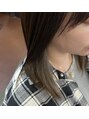 表面に細かくハイライトを入れて、その上から全体のカラーを重ねてお染しています。暗めに染めて色持ちを良くさせたりハイライトの細さや量によって余り派手過ぎないようにもなる、前下がりのショートボブで乾かすだけで決まるスタイルです!