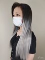 地毛をブリーチしてグラデーションにしてからエクステを付けているのでとても馴染みの良いスタイルになったます。エクステは160グラムです。