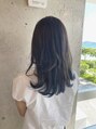 ベースはダークグレージュ、インナーカラーはネイビーブルーで染めました。ネイビーブルーの部分はブリーチ履歴が2回になっております^^