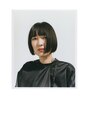 襟足ギリギリまでカットしたボブです。前髪も作り、モードな印象にしていますが、カジュアルな格好でも合うスタイルです。前髪の幅やレングスはお客様の雰囲気、骨格をみて長くしたり短くします!
