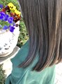 ツヤのある人気アッシュカラー♪毛先はやや切りっぱなしで重めのセミロングボブで縦長スタイルですらっとして見えます^^