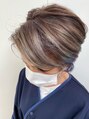 【白髪染め卒業プロジェクト】 顔周りに白髪が集中している方なので、その分布に合わせてハイライトやローライトをいれています。 耳周りだけ少しだけインナーカラーも。