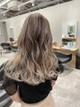 エアータッチバレイヤージュでハイトーンのベースに!暗い影を作り外国人風に仕上げておりますので、褪色が綺麗に、そしてプリンが気にならなくしております。毛先はグラデーションになっています。ベースカラーはホワイトミルクティーベージュ