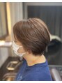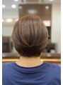 360度どこから見ても美バランスにする為、後頭部にボリュームが出る様にカットしました。サイドから見た時にアウトラインは前上りでウェイトラインは前下がりにした事で、頭がより立体的に見えます