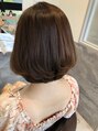 とことんふわっと丸く、女性らしさを出したワンカールボブ♪愛されボブを目指すならこのボブスタイルです(^^)カラーは艶感重視の「シアラベージュ」