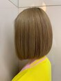 ミディアムから前下がりワンレングスにカット。サラサラストレートのワンレングスにしたいという事ですが、若々しい印象にするために、カラーはマット系のブラウンで軽さを指して、表面にメッシュを入れました。前髪の長さで印象が大きく変わります。