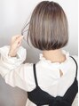 - ボブ×暗髪×ハイライトです。暗髪でも全体ハイライトで立体感が出ます。グレージュハイライトです。