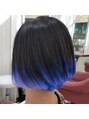 【気になったスタイルはブックマークして下さい】中間部分と毛先部分でグラデーションになるように毛先のみ2回ブリーチをしてブルーカラーをオン♪