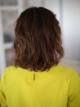 全体に強めのウェーブをつけたオールバックのボブです。パーマをかければスタイリングも簡単になるので、おすすめです。カラーは根元を暗く、毛先になるにつれて徐々に明るくすると陰影がついてメリハリのあるスタイルになります。[高崎/高崎駅]