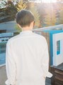 前下がりのセンターパートスタイルは 大人っぽくクールな印象に 顔まわりだけハイライトをいれることで まわりとすこし違うワンポイントにもなりますよ! 襟足とサイドは刈り上げてあるので、清潔感もバッチリのスタイルです。