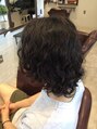 メンズのミディアムパーマスタイル 無造作にスタイリングしても 決まるスタイルだと思います。サイドは 耳前だけ刈り上げてあります。
