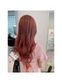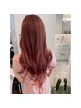 ブリーチを使用せずに明るさ10レベルのピンク系ローズで染めて、ピンクショコラでラブリー感を出しています!重さのあるロングもフワフワした可愛い感じに☆