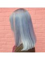 パステルブルーにピンクのエクステとティンセルを入れました。