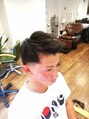 サイドはローフェードのツーブロック、えりは厚めの刈り上げた短髪スタイル