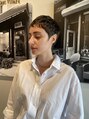 レディースのベリーショートです。おでこのまるみが綺麗に見えるようにスタイリングも前髪をながしています。柔らかい髪質の方におすすめです^ ^