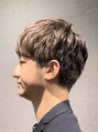 分け目なしの流し前髪が、ソフトで優しい印象を引き立てる大人のマッシュスタイル。サイドとバックはカラーリングが映える長さを残す刈り上げで、スッキリとした印象に。ダークブラウンカラーがとても魅力的。白髪染めに見えない白髪染めです。
