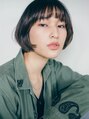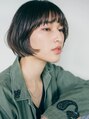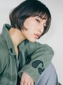 バング両端からサイドにかけて緩やかにつながる、前上がりラインがチャーミングなボブスタイル。シルエットに丸さを出すことで、女性らしさのあるフォルムになります。服が似合う髪です!