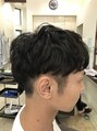 髪が硬く直毛のお客様。すっきりとツーブロックで刈り上げパーマが取れやすい髪質をハードなパーマで動きをプラス。