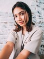 ミディアムレングスの外ハネスタイルです。肩に当たってハネやすいながさもあえてハネさせることによってスマートにみせることができます。カラーは艶感がでやすいブラウン系です。スタイリング剤は艶感がでるオイル又はバームがおすすめ。