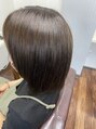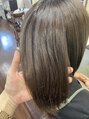 大人かわいいオリーブベージュ。赤味を抑えてやわらかなベージュ系に(^-^)♪表面は明るくなりやすいのでワントーン落としてカラーしています。白髪の気になるところはグレイカラーでしっかりカバーします。