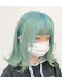 ハイトーンブリーチ外ハネミディアムライトミントグリーンmaaya/ホットペッパービューティー