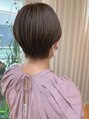 マッシュラインが可愛いコンパクトショート。サイドはおろすと耳半分隠れるくらいの長さです。前回かけたパーマを活かしてアイロンを使わずスタイリングしています。カラーはイルミナ グレージュでトーンアップ!夏にぴったりなショートスタイルです♪