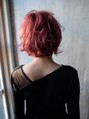 ハイトーン染めることで明るく仕上げたコンパクトなショートボブ。頭を小さく見せてくれるのでスタイルアップと小顔効果があります!!バングを短くすることで顔周りを明るい印象にトップにレイヤーを入れて動きを出しやすくしています!