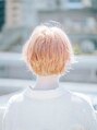 表面に長さを残したショートスタイル。毛先には動きがつきやすいように軽さを出しています。表面を長めに残すことで、ふんわりとした質感が出しやすく、女性らしいシルエットを作れるショートです。