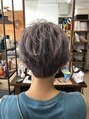 トップにボリュームが出るようにカット。セットがしやすいショートヘアです。白髪が気になるのでハイトーンのアッシュにしたいとのお客様スタイルです!しっかりブリーチして、抜けてもクリアなシルバーになるようにカラーを重ねてます。