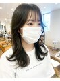 韓国ヘアのエギョモリカット!スタイリングがとても簡単ですし、くびれをつけたい方にオススメ!赤味を消したいので、カラーは透明感のあるピスタチオグレージュ!根元パーマでトップをふんわりさせるプリカールでシルエット美とペタ毛解消