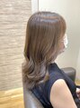 ロングレイヤースタイル。イルミナでツヤのあるベージュカラー。