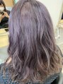 ブリーチ2回後パープルベースのグレーの色味を入れました。