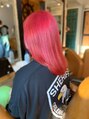 派手髪はお任せください!ビビッドなベリーピンクに仕上げました♪パープルピンクとベリーピンクを混ぜる事で深みのある可愛らしいカラーに!一味違ったピンクを楽しみたいならぜひ♪