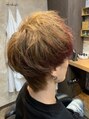 メンズカット ハイトーン 赤メッシュ 顔まわり