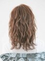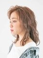ガーリーなウェーブ感と前髪かき上げスタイルで大人っぽく、かっこいい印象に。スタイリング剤はミルクを使用し、ふんわりツヤ感を演出。カラーはピンクブラウンのハイトーンカラーで夏っぽさをプラス