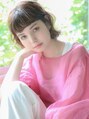 幅広オン眉バングにふんわりコンパクトなボブが可愛いスタイル♪リアルパーマでスタイリング楽チンに☆