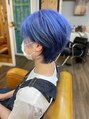 ペールカラーはお任せ下さい!!退色時、黄色味が出ないようブリーチでしっかり脱色し、3種類の青を絶妙な調合でオンカラー♪大人気!綺麗なブルーカラーおすすめです(*^◯^*)