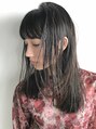 ワンレンロングボブ。束感が綺麗に出るように質感調整します。ワイドめな前髪がポイント。