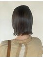 切りっぱなしでぱつっとした感じは残しつつ重すぎないように量感調節もしてオリーブ系のベージュカラーで透明感を出しています。