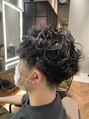 メンズの無造作パーマスタイル。刈り上げでスッキリとさせつつ、パーマで動きを出しました。