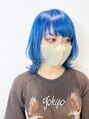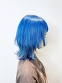 美骨カットでウルフにカットしてからブリーチを全体に塗布してスカイブルーになるようにオンカラー♪りんご幹細胞トリートメントをミックスしてダメージを感じさせないサラサラ感に♪