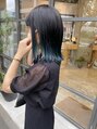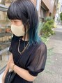 ワンブリーチでできる毛先ターコイズブルーの切りっぱなしボブ。毛先はぷつっとしてるけどコンパクトにおさまるようなカットがポイント。ダークカラーに飽きた方にオススメなお洒落なカラーです!#ケアブリーチ#縮毛矯正#髪質改善#ボブ#パーマ#カット#カラー