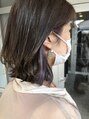 耳周りのみのインナーカラーです。ミドルブリーチからの淡めのラベンダーをのせています。ボブベースのスタイルだと髪を下ろしている時は隠れます。耳に掛けると見えるので可愛いですよ。ベースカラーは中明度のグレージュ系です。