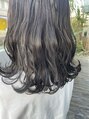 カットのシルエットは重めだけど野暮ったく見えないように毛量調整で柔らかい質感にカット。毛先は重めに伸ばしやすいように。カラーは地毛に近い色まで暗めだけど艶っぽく少しブルーを入れて、色が抜けて柔らかく見える様にベースはグレー系です☆