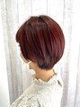 ツヤ感のあるレッドブラウンに襟足スッキリのコンパクトショートを合わせたスタイルになります!スタイリングも簡単にできるのでオススメです!